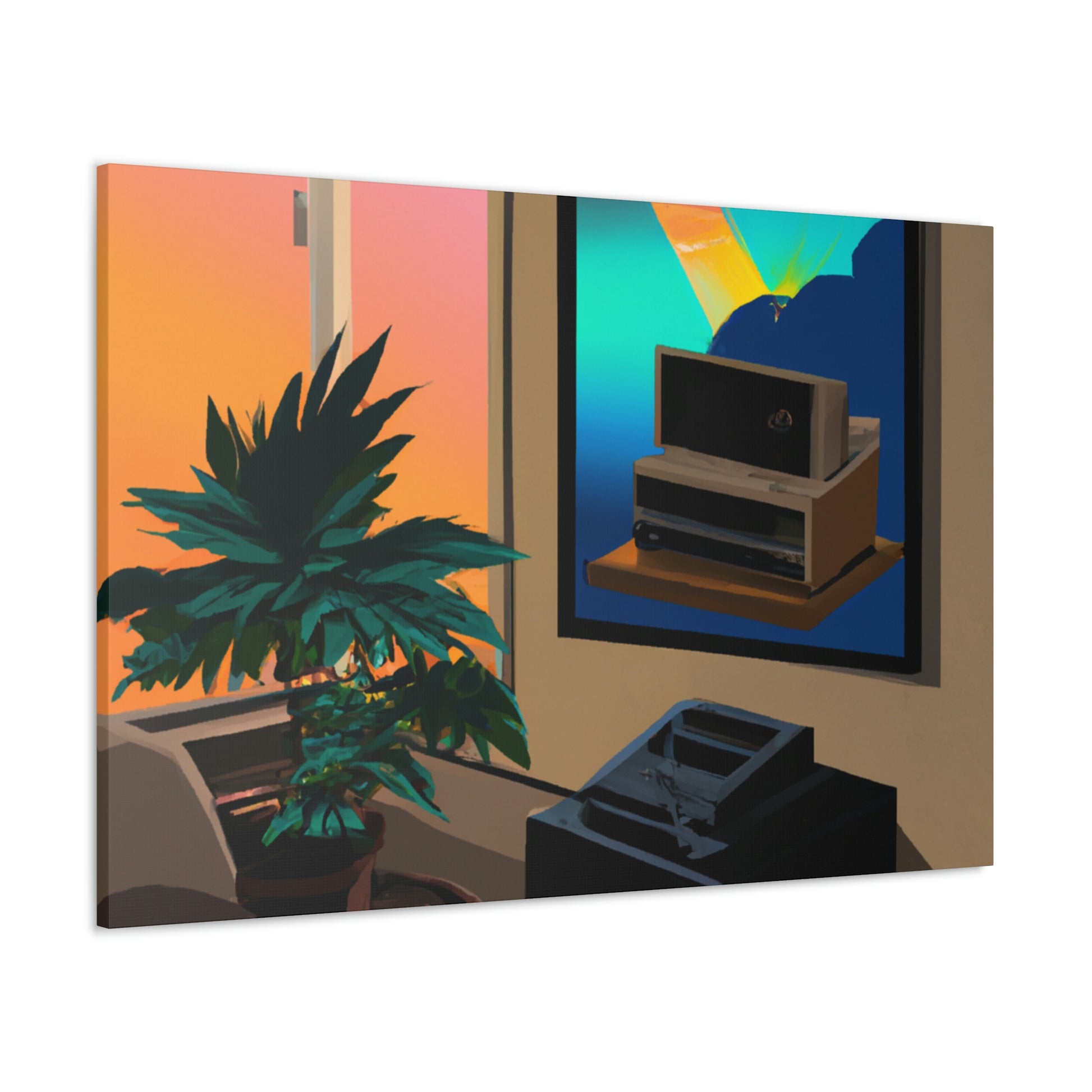 Discover the modern beauty of this 80's painting on a durable canvas—add a splash of color to your living room wall. Featuring crisp digital art, inspired by the culture and color of the time, there's no better way to fill your home with a unique, vintage touch. Add a splash of nostalgia and sophistication to your living room today! #80s #digitalArt #canvas #painting #vintage #wallart #LivingRoom #modern #beauty #durable #nostalgia