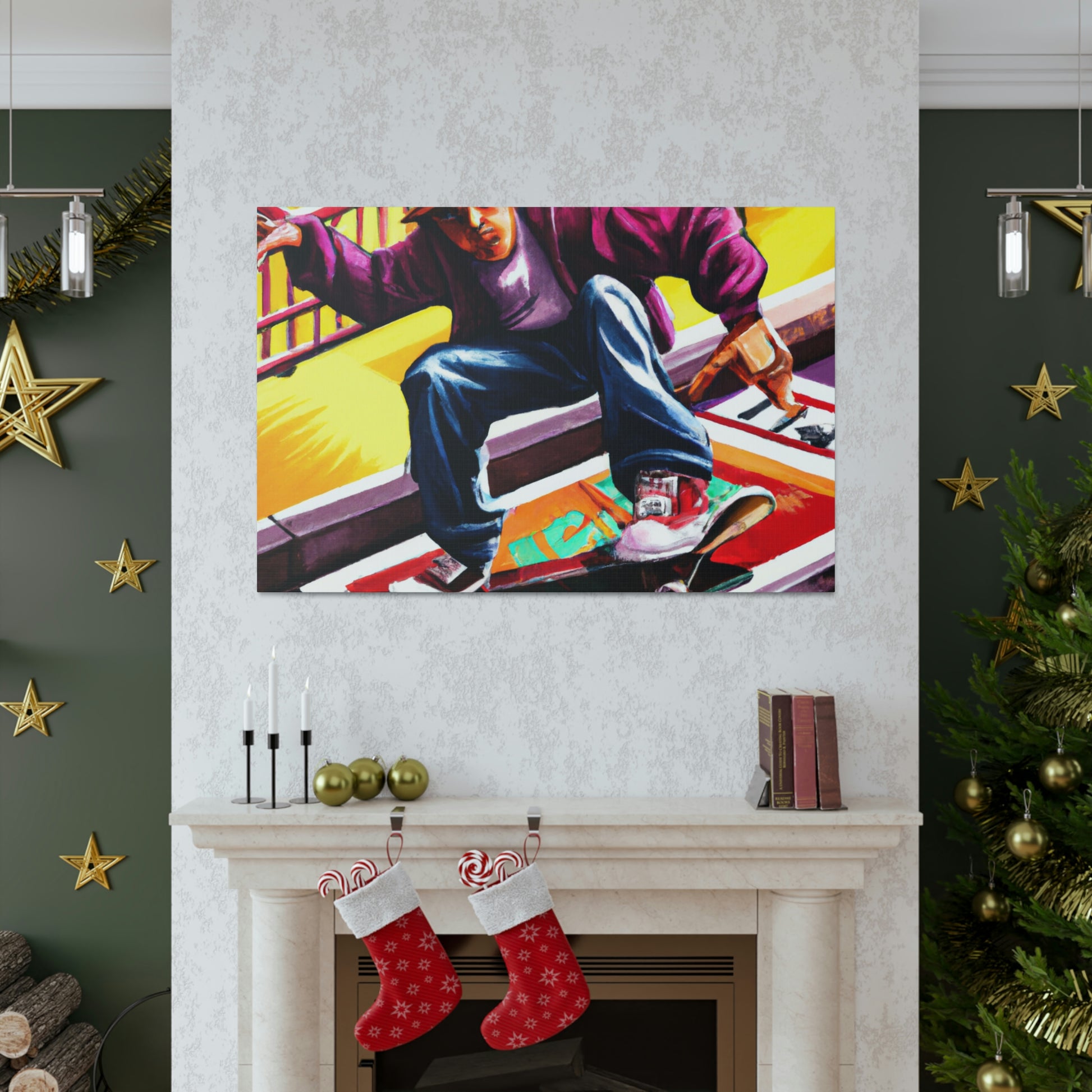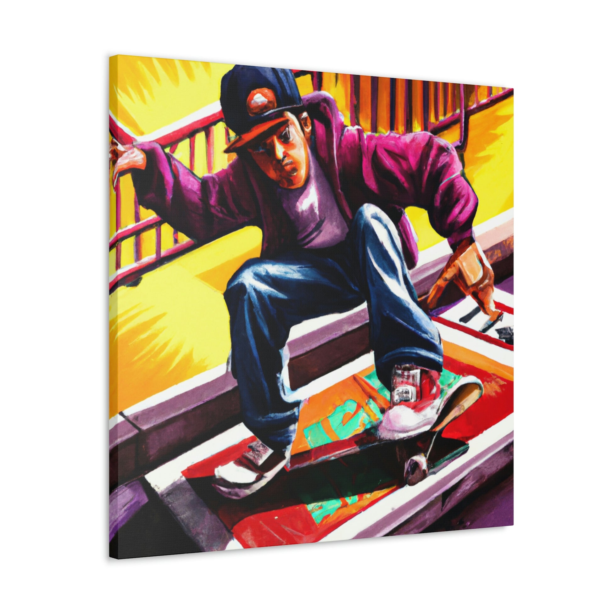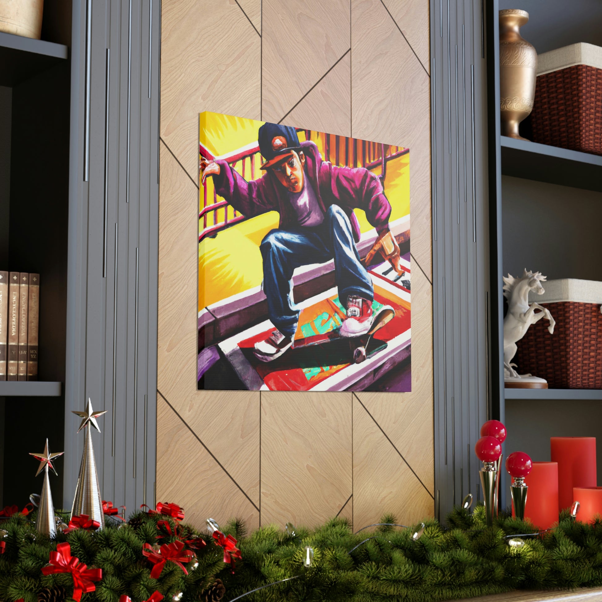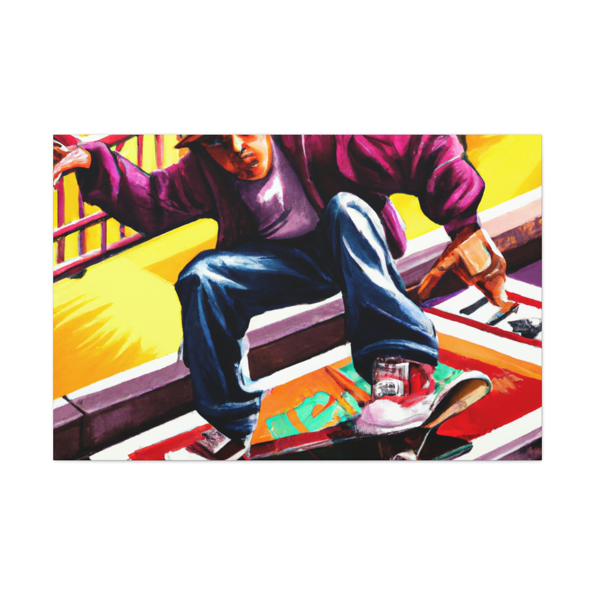 This digital art canvas features a dynamic image of a 90's street skateboarding style painting and a modern take on graffiti art. The unique blend of bold colors and captivating shapes brings a vibrant energy and a classic style. Its sleek design is perfect for any modern space and adds a playful touch to any setting. #90sstreetstyle #90shiphop #vibrantcolors #streetstyle #skateboarding #digitalart #vibrantstyle #modernstyle #graffitiart #dynamicart #classystyle