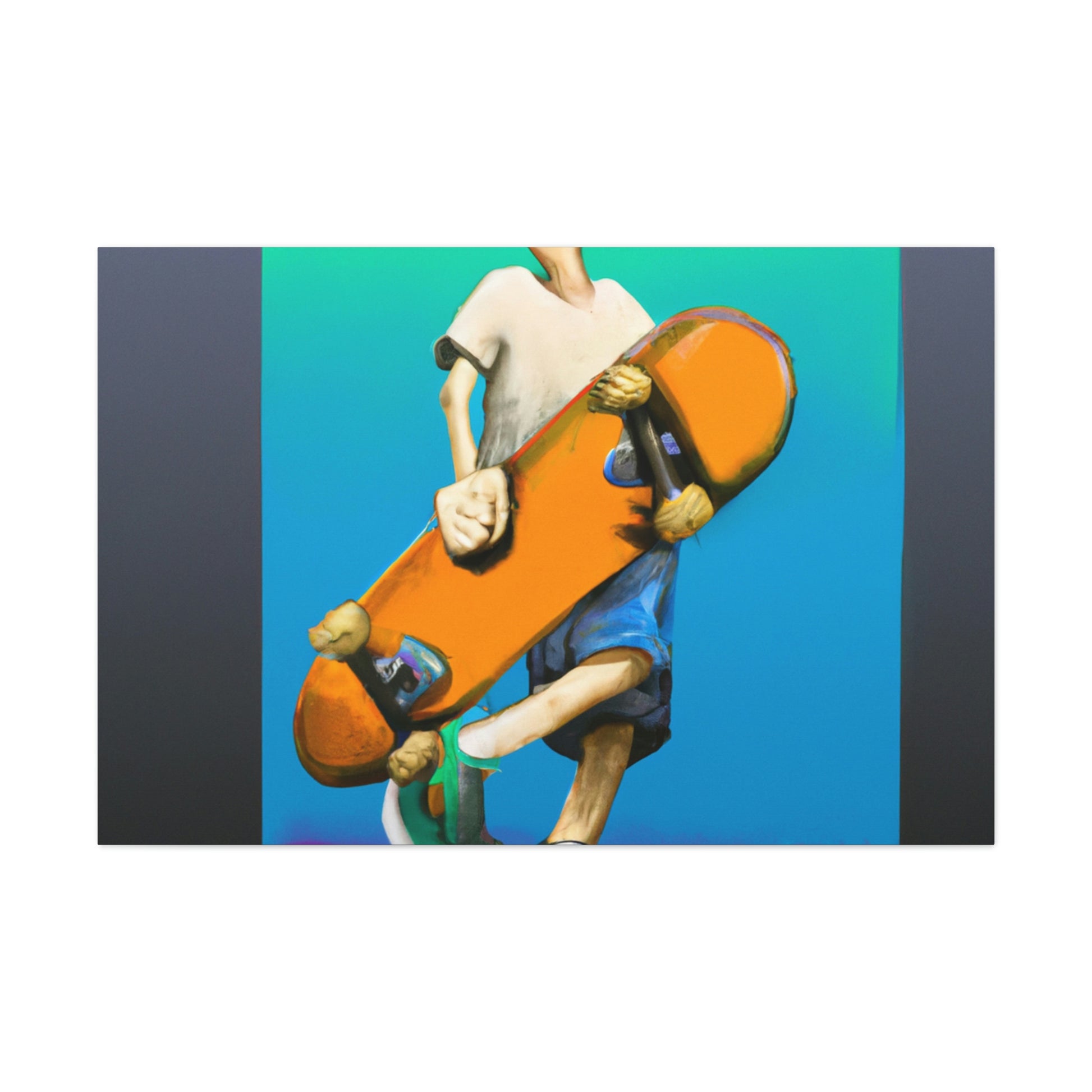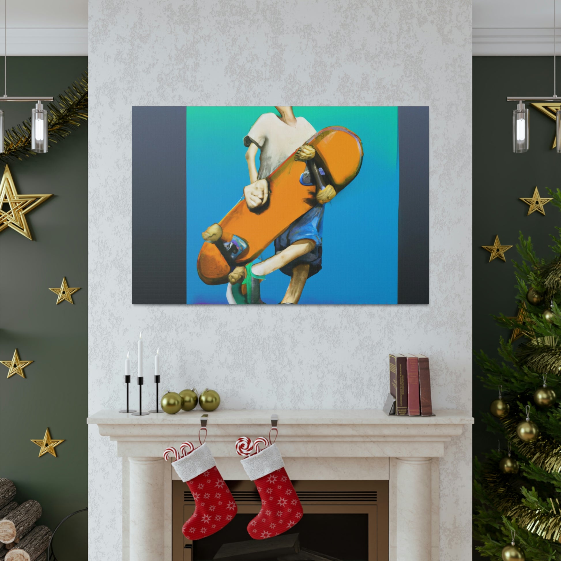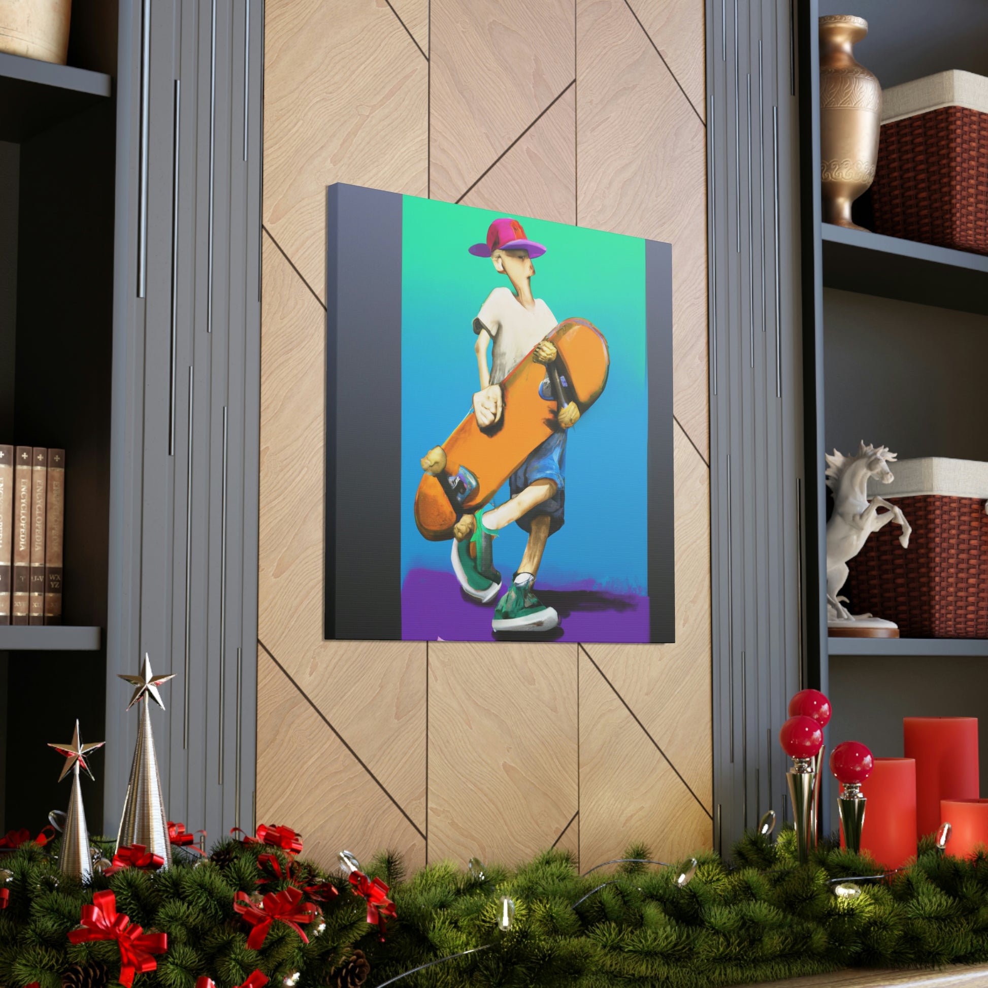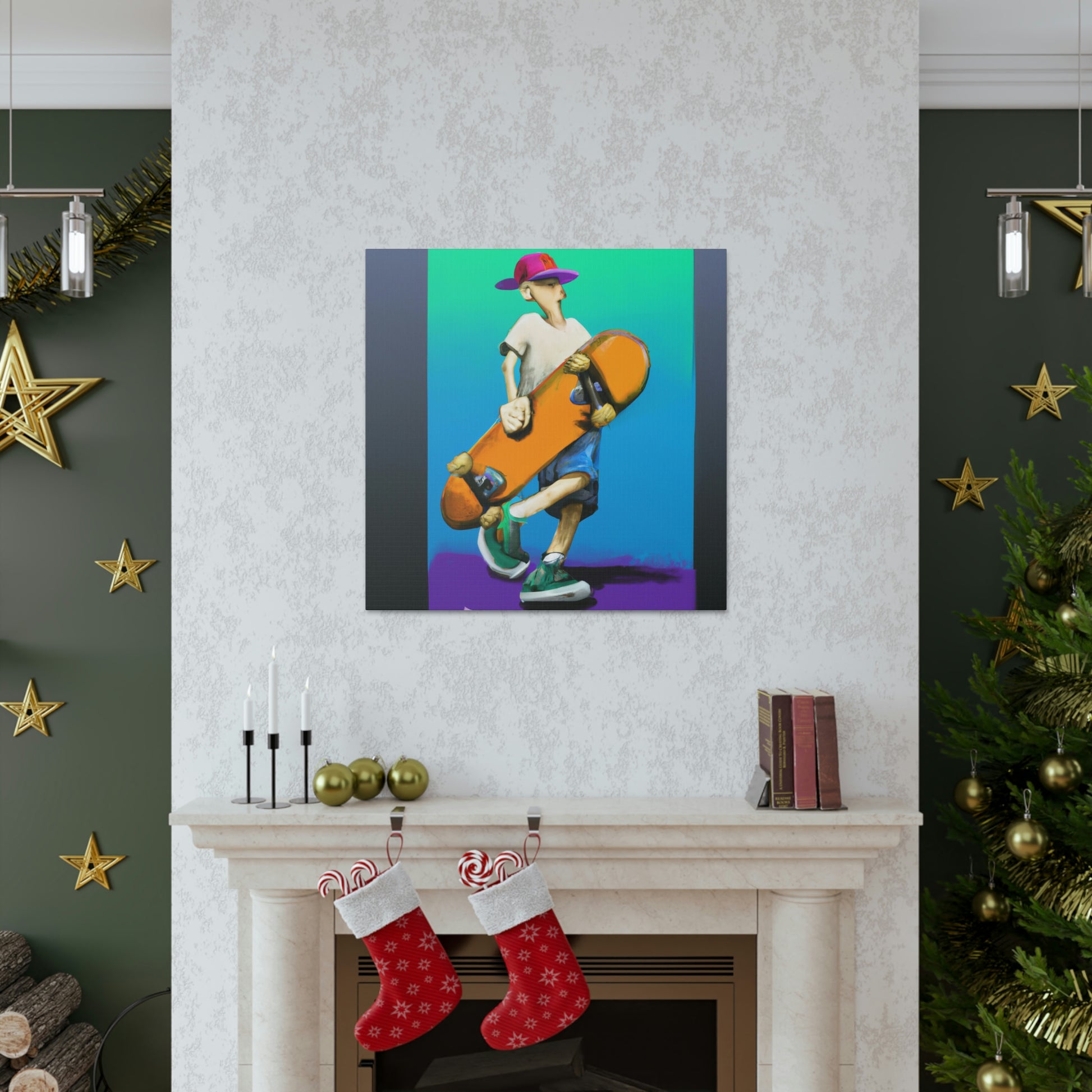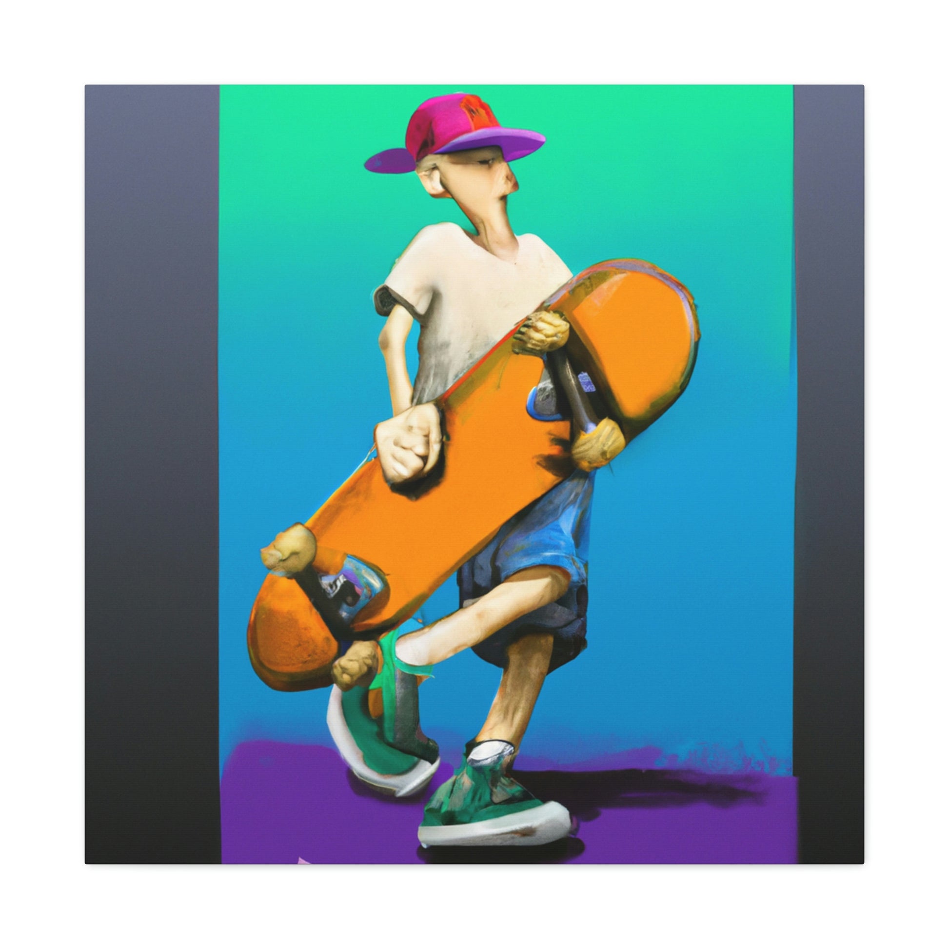 This beautiful canvas depicting a 90's style hip hop street skateboarding scene is the ideal addition to any street art-loving home. An iconic style of digital art, its bright colors and blocky shapes evoke a charming nostalgia. Its vibrancy speaks of a by-gone era of radical expression, radiating a unique energy that will fill any space with nostalgia and joy. #skateboarding #digitalart #streetart #90sstyle #90s #hiphop #skaterstyle #skaters #skateboardingoncanvas #streetstyleartist #skateboardstyleandlife