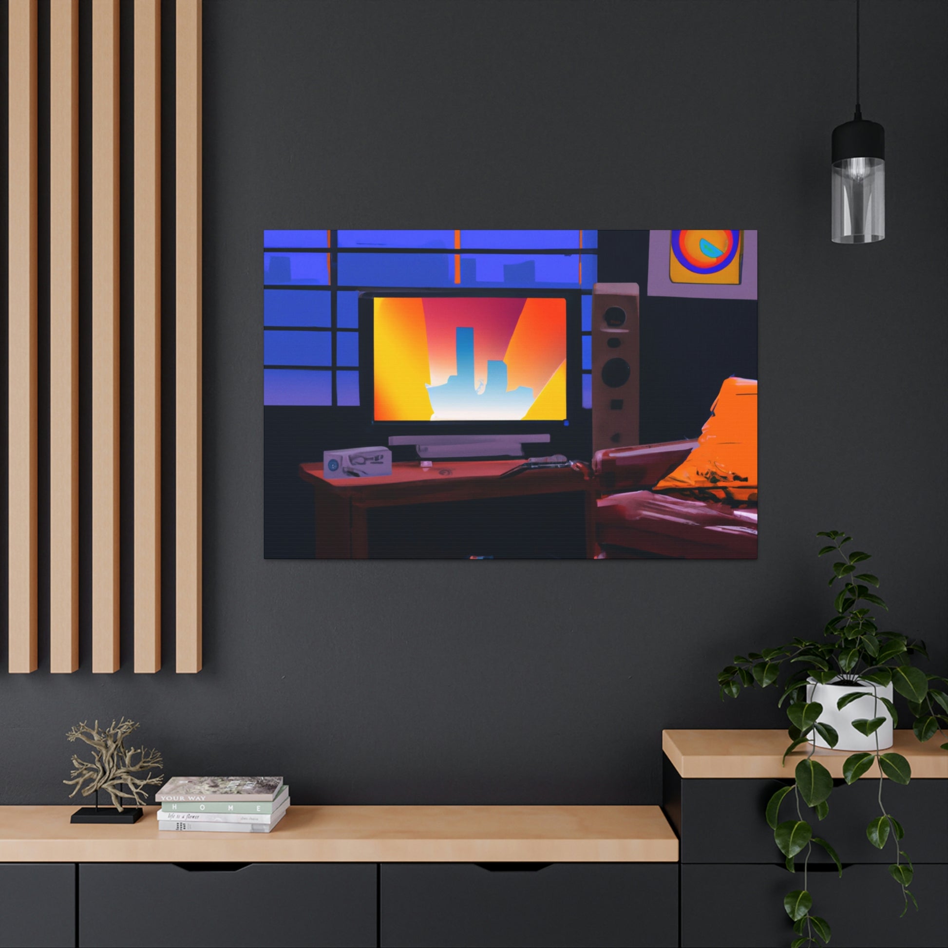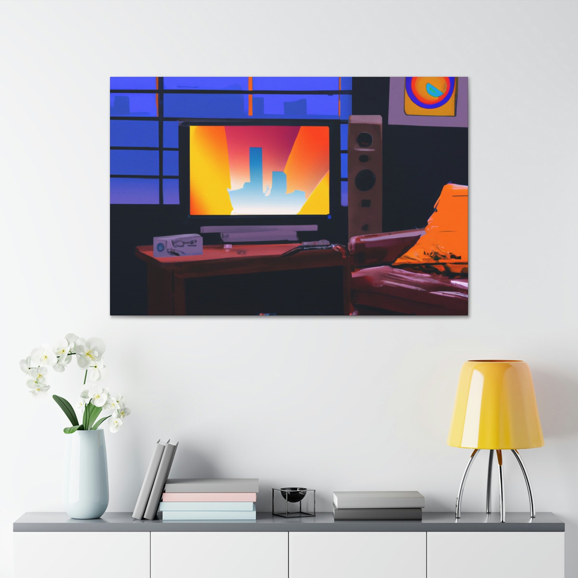 This digital art canvas is perfect for adding a bit of color and funk to your living room. Featuring an 80's painting, this canvas will bring the era to life in your home! Crafted with expert attention to detail, it'll be sure to brighten up your living room. #Canvas #80sPainting #LivingRoom #DigitalArt #LivingRoomDecor #WallArt #ModernDecor #ArtLovers #DesignInspire #ArtLove #WallDecor